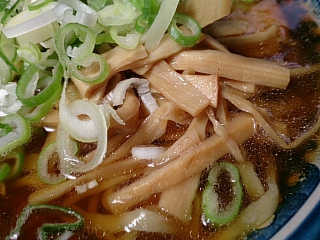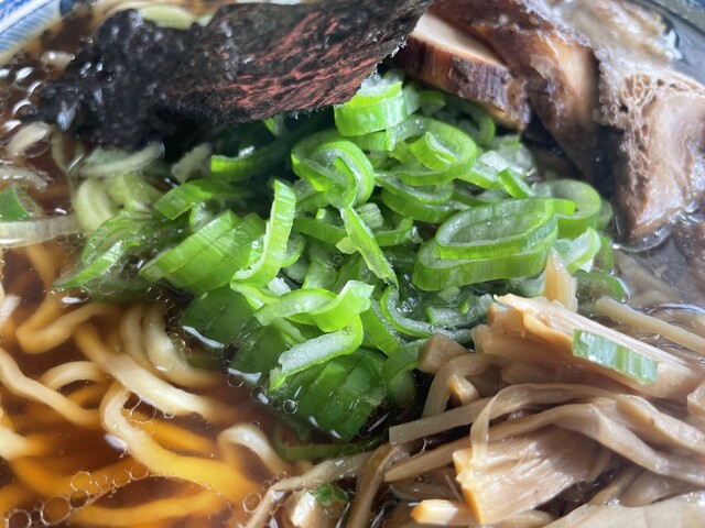 しっかり味の付いた柔らかいたっぷりのチャーシューと細切りメンマ、青ねぎもたっぷりです。