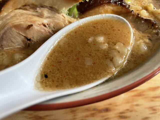 『辛子味噌らーめん(太麺・こってり)』のスープ