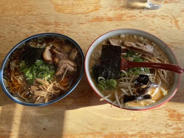 『らーめん(細麺・あっさり・中&辛子味噌らーめん(太麺・こってり)』