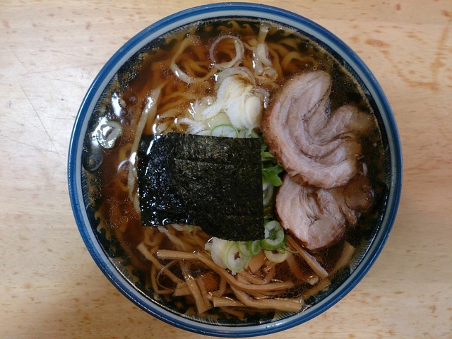 モチモチとした食感の中太麺に醤油がキリッと効いた魚介系スープが絡んで至福のひと時、いつもお客さんが途絶えない理由が分かります。