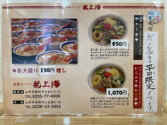 南陽市で食べ逃した「赤湯からみそラーメン」を求めて、鶴岡市日出二丁目地内、国道112号沿いにお店を構えるラーメン店「龍上海 鶴岡店」さんに約3年半ぶりに訪店、大人気店だけに大勢のお客さんで賑わっています。