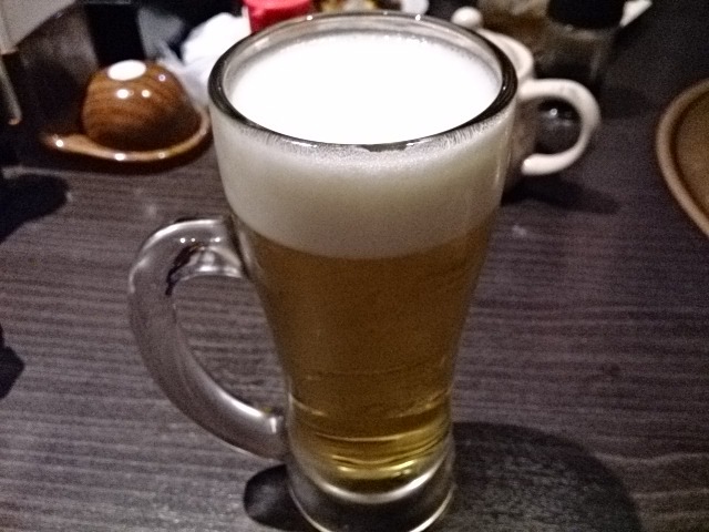 焼肉などを数種類オーダーしてから「生ビール」で乾杯、1年間の疲れた身体に染みわたります。