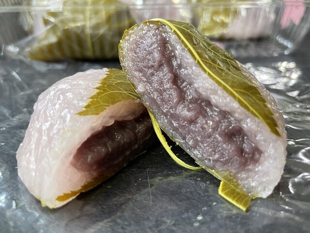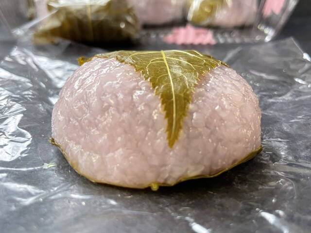 ここ庄内は京文化の影響か関西風で他の和菓子にはないツブツブ食感の生地に絶妙な甘さのこし餡、塩漬けし独特な風味が特徴の桜の葉が絶品です。
