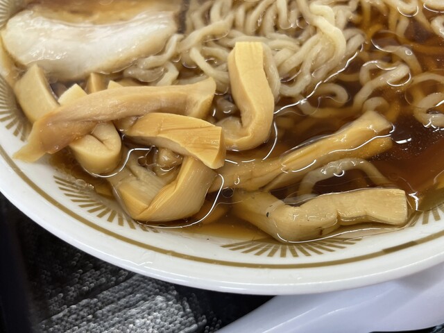 『朝食 ラーメンニンニク野菜マシマシ+メンマ』のメンマ