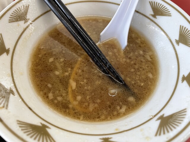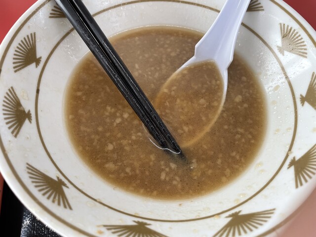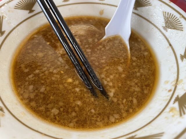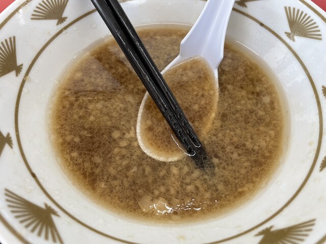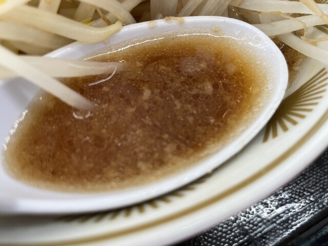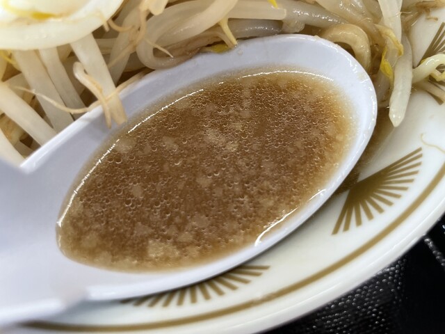 『朝食セット(ラーメン野菜マシマシ・ライス大)』のスープ