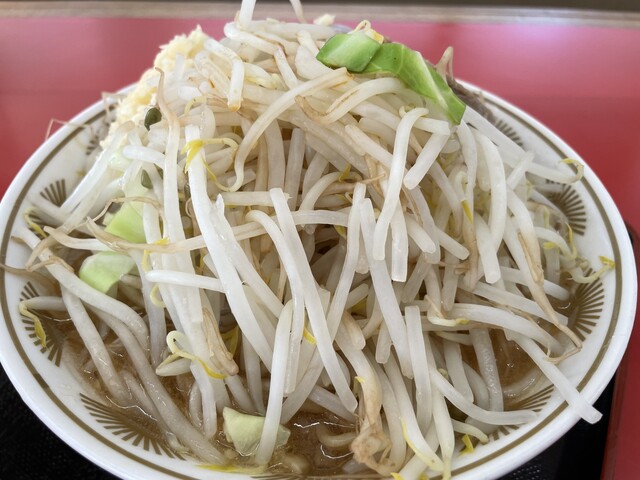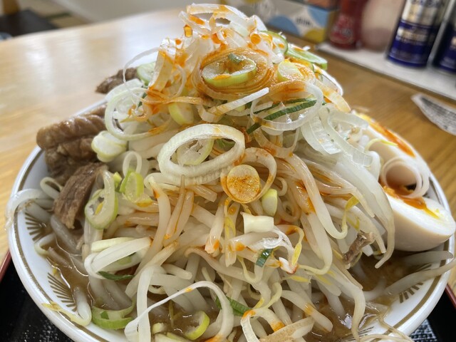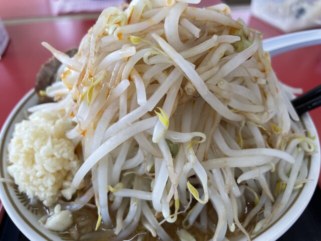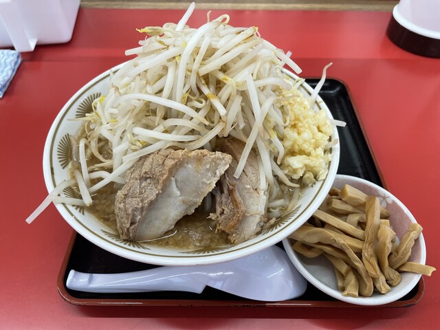 『朝食 ラーメンニンニク野菜マシマシ+メンマ』のラーメンニンニク野菜マシ