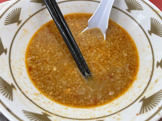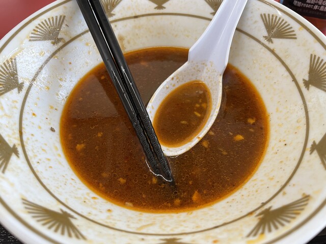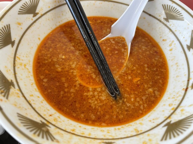 『赤唐味噌中華ニンニク(食べるラー油つき)』のスープ