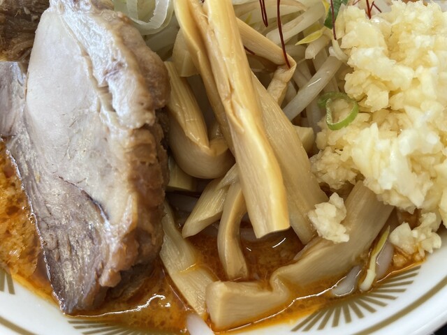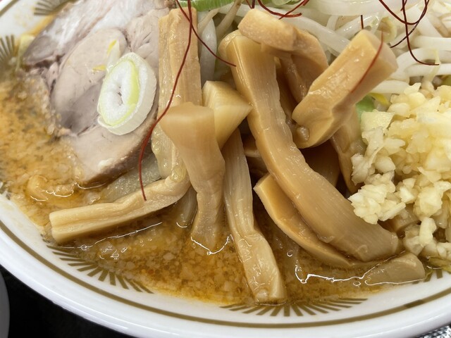 『ラーメンニンニク野菜マシマシ+C賞メンマ』のラーメン