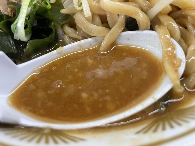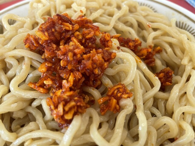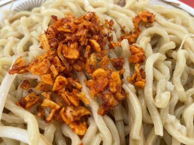 濃厚な味噌ダレに赤唐辛子&食べるラー油の辛味がよく合い、更にニンニクを入れることで美味しさも倍増、小麦の香りが抜群の中太縮れ麺もあっという間になくなります。