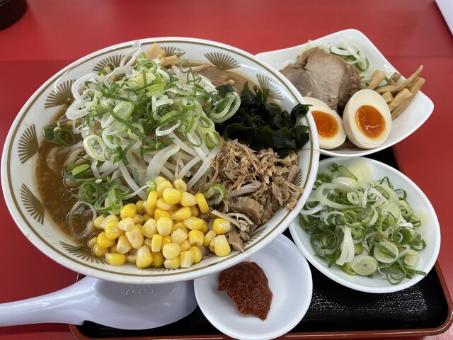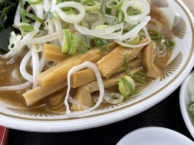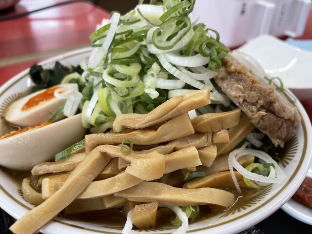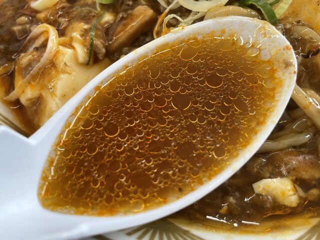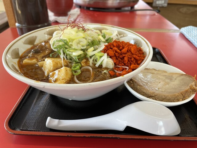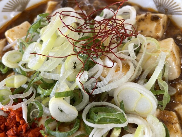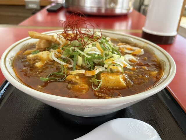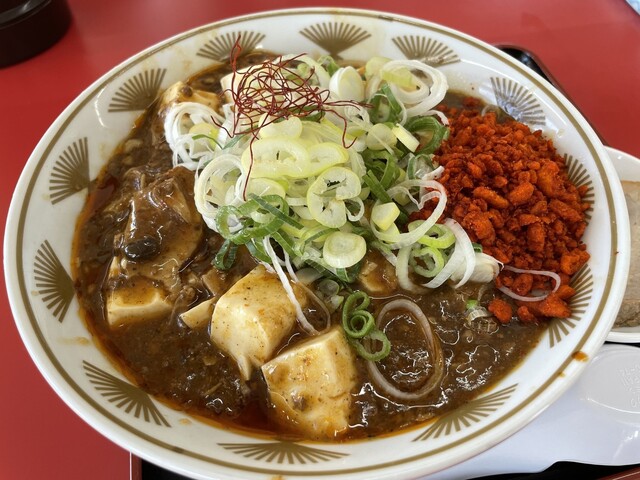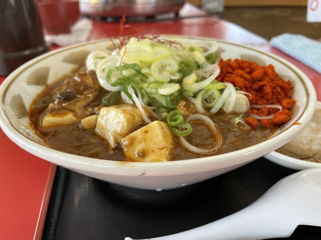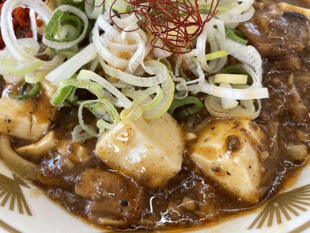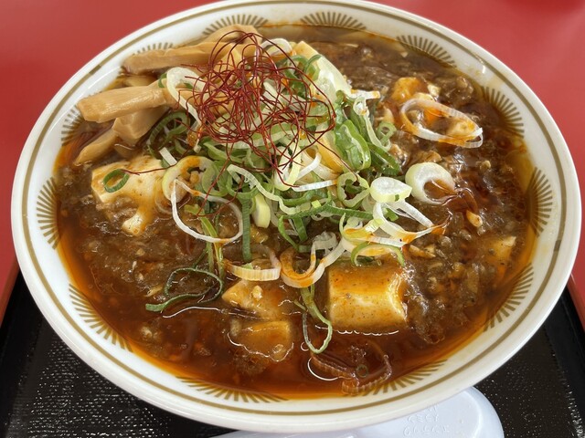 程なくして着丼、麺が見えなくなるまで盛られたたっぷりの麻婆餡とネギ、「麻婆ラーメン」には珍しいメンマのトッピングが特徴的です。