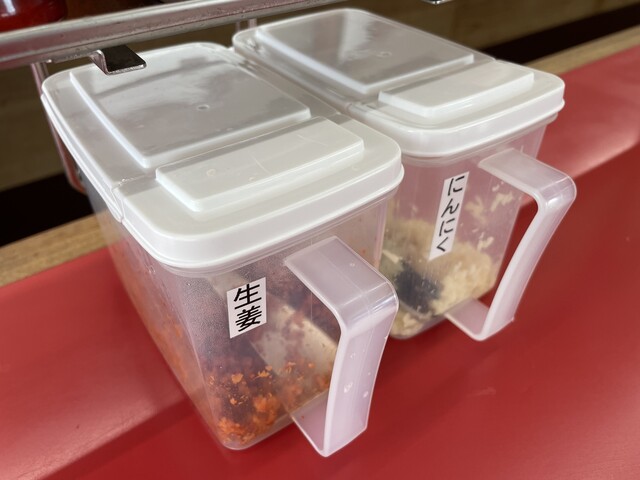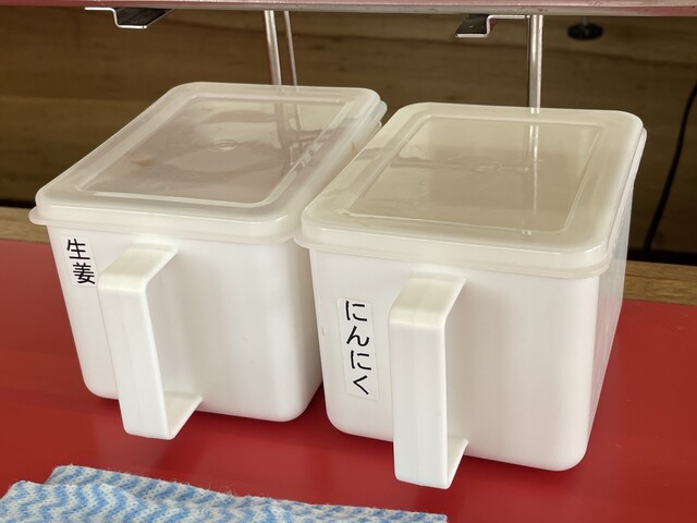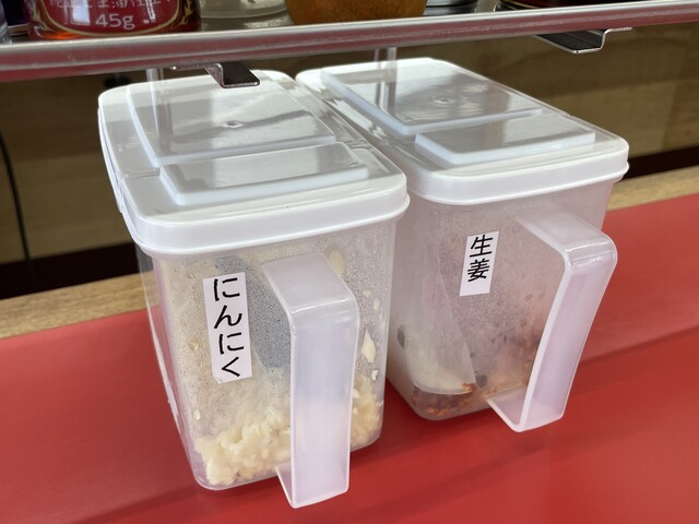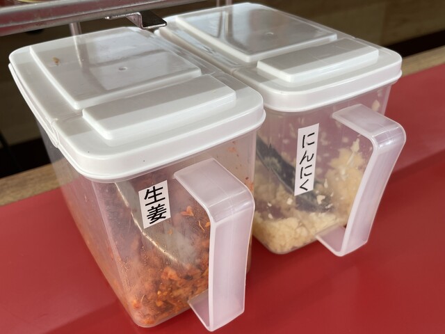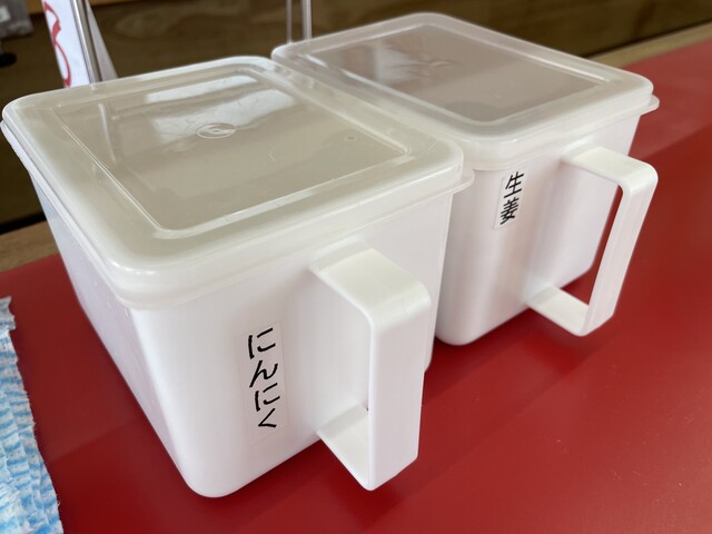 『朝食セット(ラーメンニンニク野菜マシマシ&ライス普通)+A賞特典』のニンニク