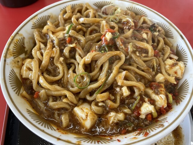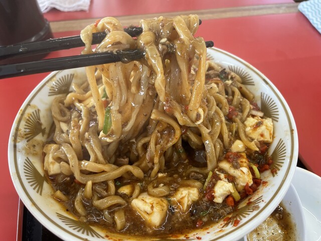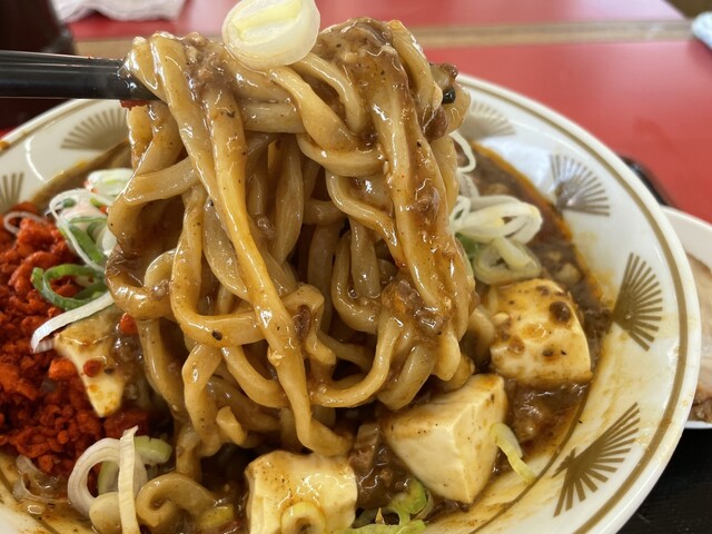 自家製旨辛麻婆餡は辛味が強めですが癖になる辛さ、麺に絡んでどんどん箸が進みます。