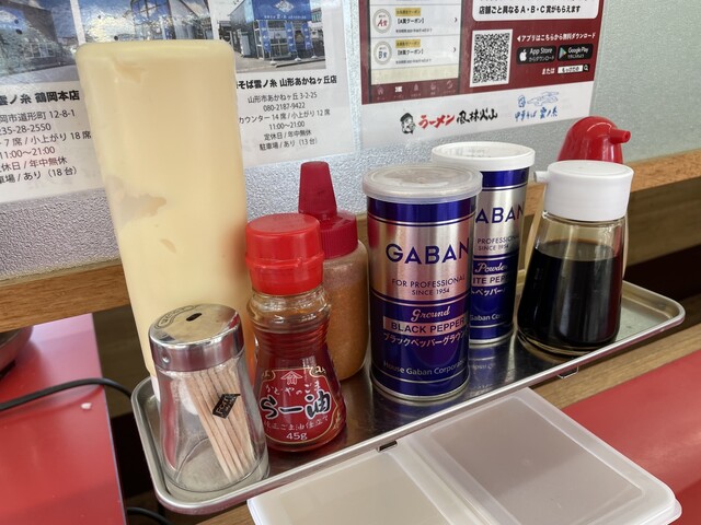 いつもお世話になっている「ラーメン 風林火山」さん、今回はマイランキング第1位の二郎インスパイア「ラーメン野菜マシマシ」をオーダー、豊富な種類の卓上調味料からいつものニンニクをたっぷりトッピングしていただきました。