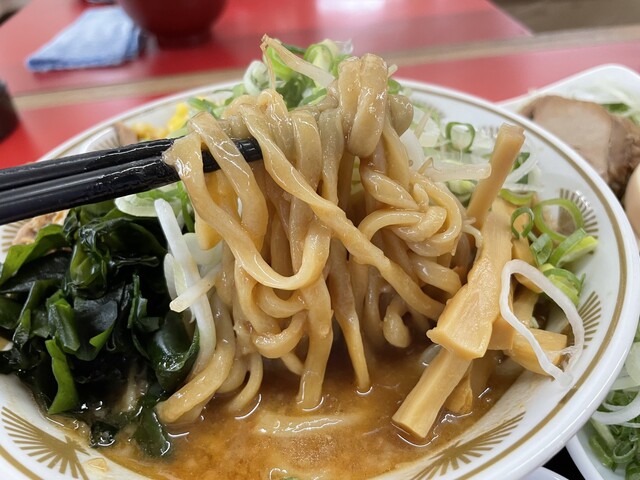 『朝食セット(ラーメン野菜マシマシ・ライス大)』の麺
