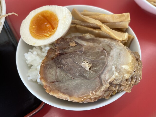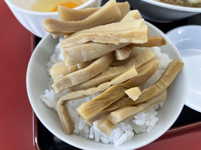 『朝食 ラーメンニンニク野菜マシマシ+メンマ』のメンマ丼