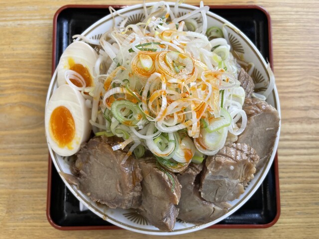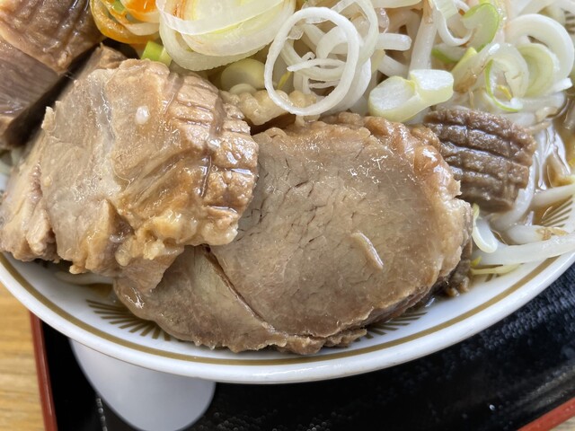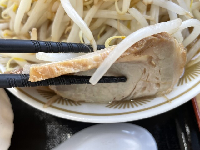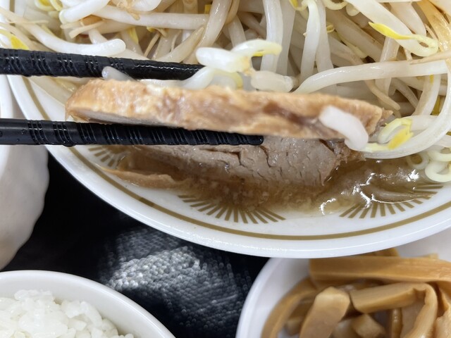 『朝食 ラーメンニンニク野菜マシマシ+メンマ』の豚