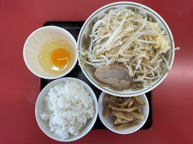 『朝食セット(ラーメン野菜マシマシ・ライス大)』のTKG