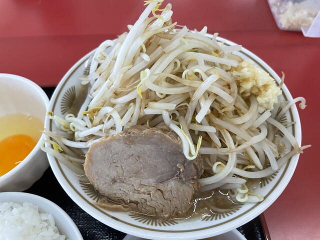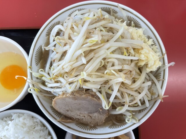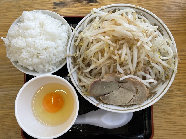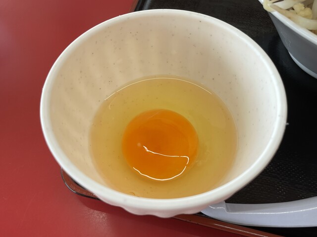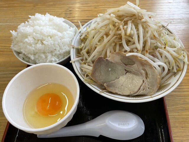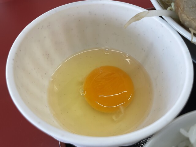 『朝食セット(ラーメン野菜マシマシ・ライス大)』の生卵