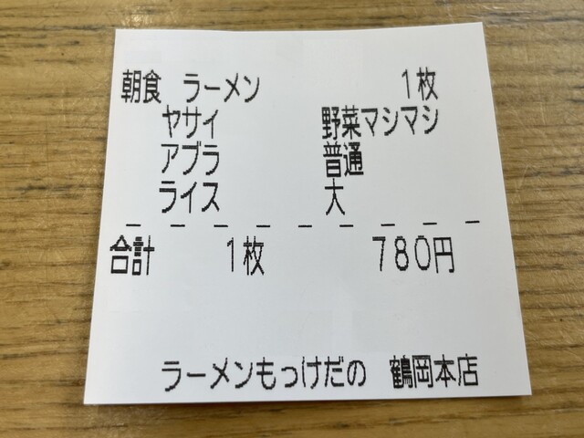 いつもお世話になっている「ラーメン もっけだの 鶴岡本店」さん、朝食メニュー終了前にお邪魔して、ブランチすることにしました。