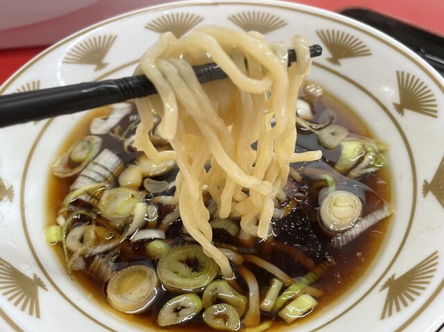 『朝食セット(ラーメン)+あぶら飯』の『ハーフラーメンニンニク野菜マシマシ』の麺