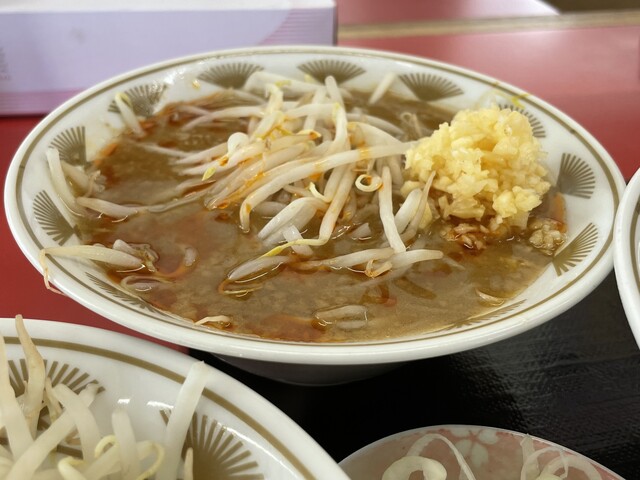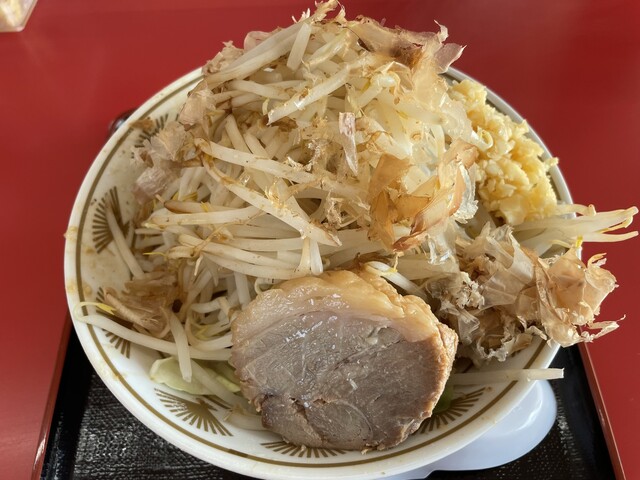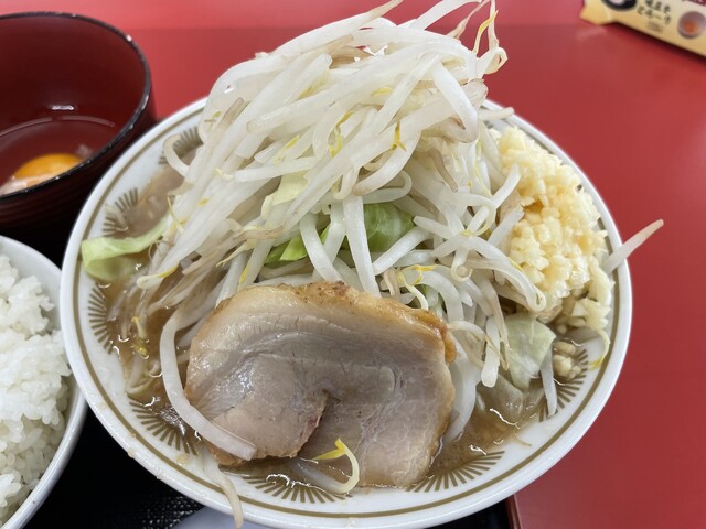 『朝食セット(ラーメン)+あぶら飯』の『ハーフラーメンニンニク野菜マシマシ』