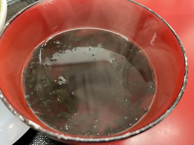 『赤唐味噌まぜそば(食べるラー油付+ネギ)』の岩のりスープ