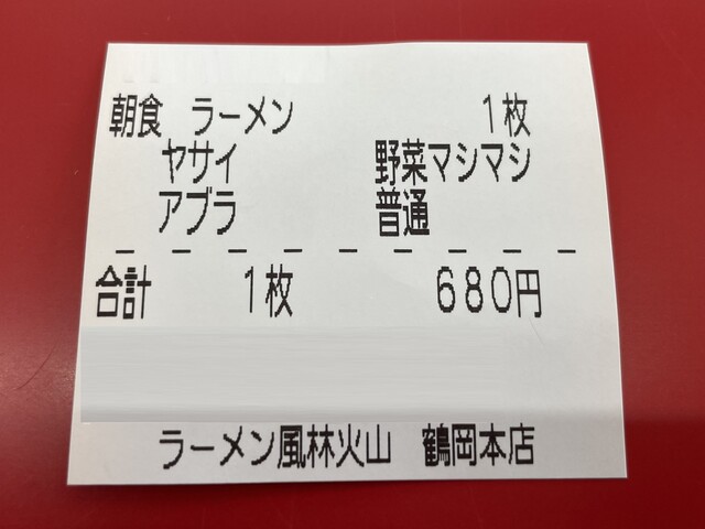 いつもお世話になっている「ラーメン 風林火山」さんで今回は「汁なし野菜マシマシ」のチケットを購入、このメニューをオーダーしたのはハーフ&ハーフで食べて以来約1年半ぶりになります。