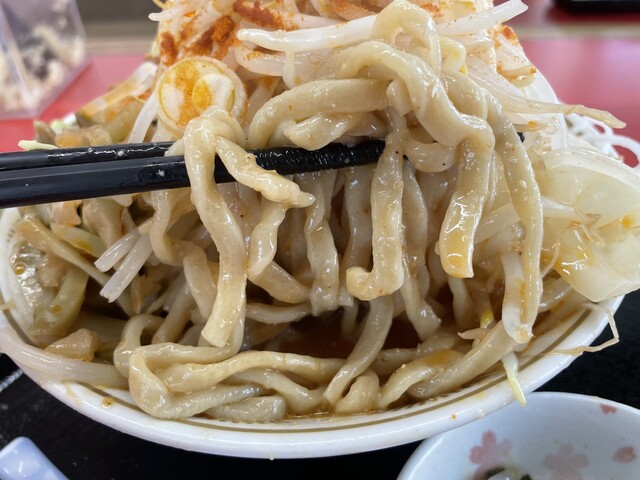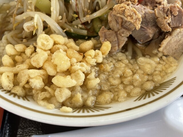『油そばニンニク野菜マシマシガリマヨなし』の豚