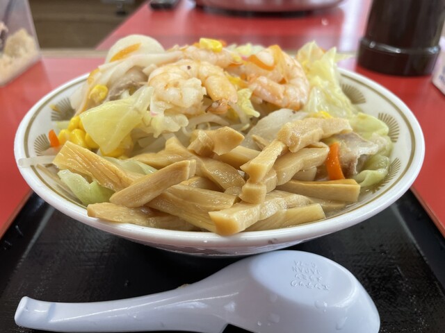 辛玉のピリ辛さがアクセントになって存在感十分、途中卓上のマヨネーズで味変し満腹大満足の1杯になりました。