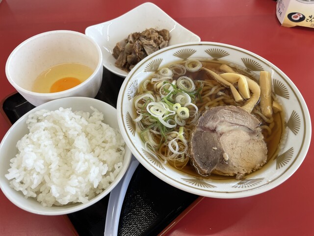 『朝食セット(ラーメン)+あぶら飯』の『生卵+カエシダレ』
