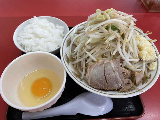 『朝食セット(ラーメンニンニク野菜マシマシ)』のTKG