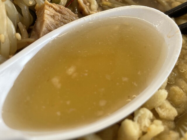 『ラーメンニンニクショウガ野菜マシマシ』のスープ
