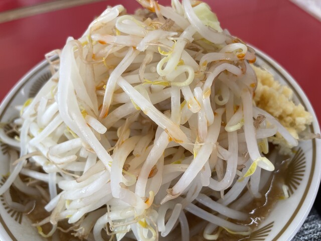 『朝食セット(ラーメン)+あぶら飯』の『ハーフラーメンニンニク野菜マシマシ』の野菜