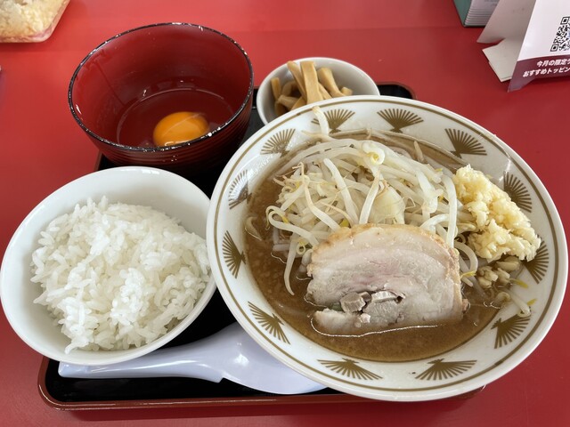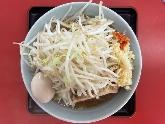 『ラーメン普通ニンニクショウガヤサイマシマシ+味玉(スクラッチクーポン)』