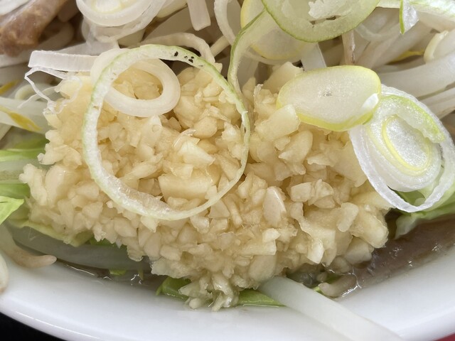 『ハーフラーメンニンニクヤサイマシマシ+ネギ』のニンニク