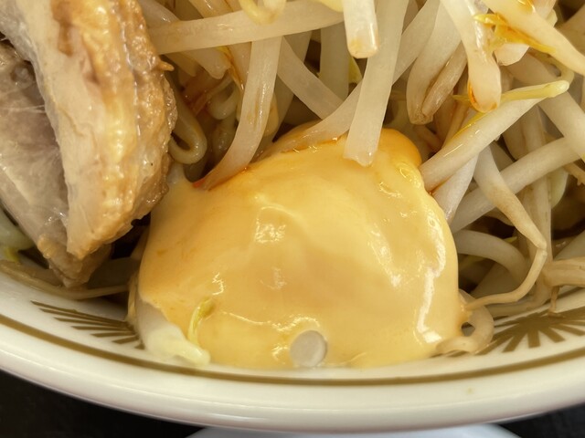 『ラーメン普通ニンニクショウガヤサイマシマシ+味玉(スクラッチクーポン)』の味玉