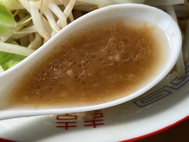 『ラーメン普通ニンニク野菜マシマシ+ネギ』のスープ