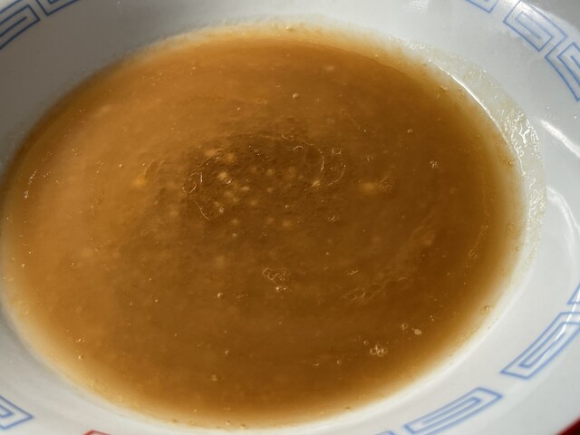 『朝食セット(ラーメン)+メンマ』の『ラーメン+ニンニク』のスープ