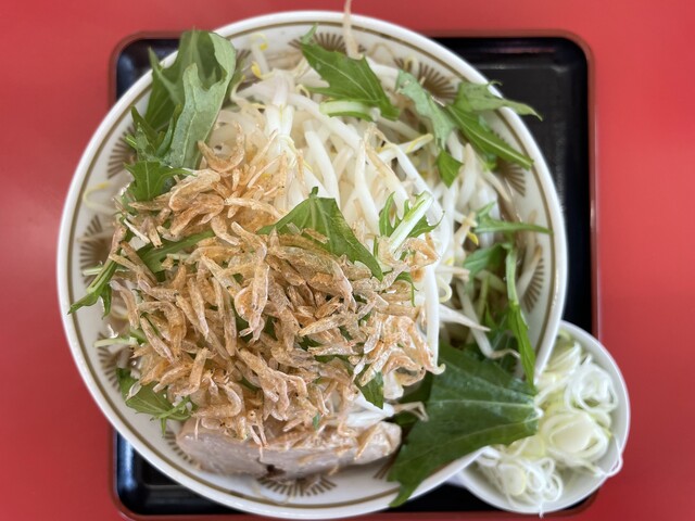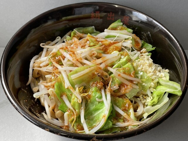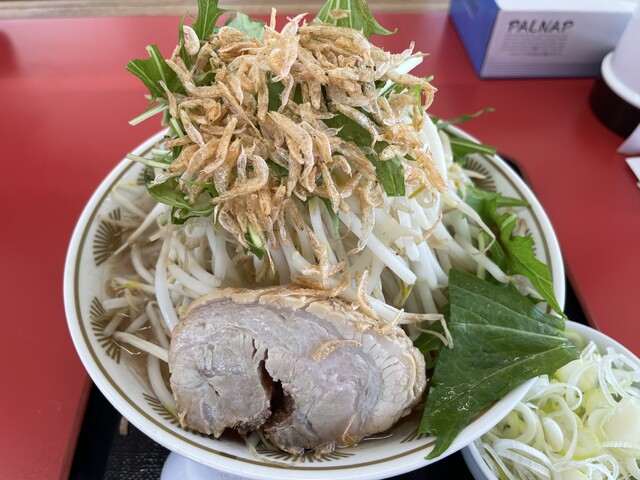 『ハーフ汁なしニンニクヤサイマシマシ+ネギ』のヤサイ+ネギ