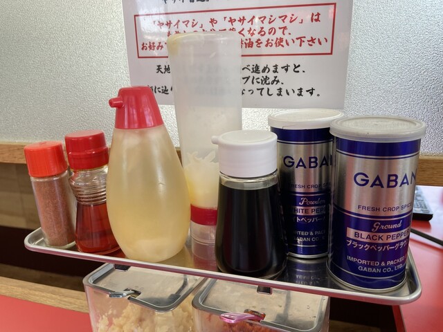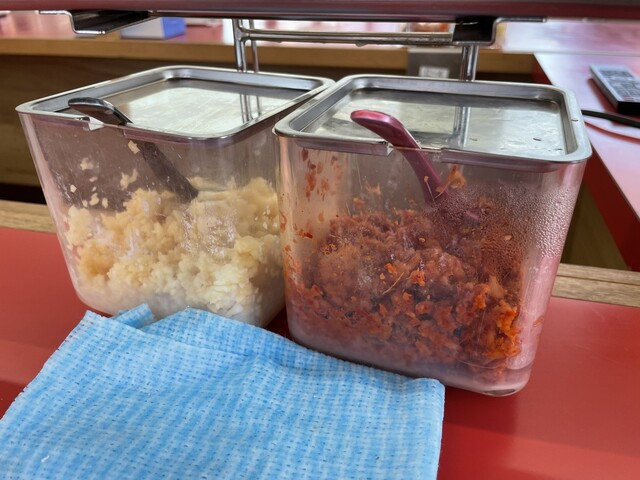『ラーメン普通ニンニクヤサイマシマシ』のニンニク(セルフサービス)