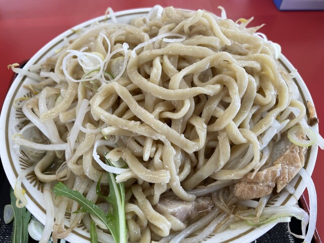 『ハーフ汁なしニンニクヤサイマシマシ+ネギ』の麺