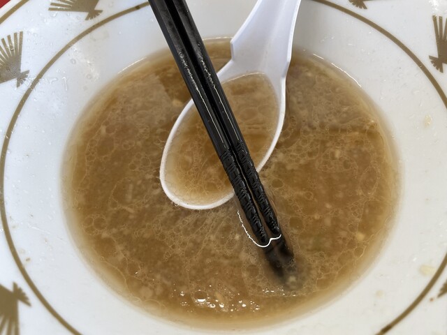 『朝食セット(ラーメン)+ニンニク』の『ラーメンニンニク』のスープ