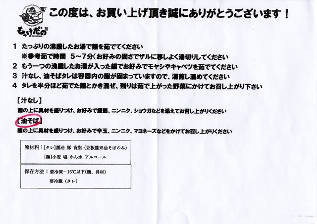 『冷凍汁なし、油そば』のレシピ