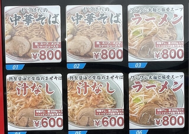 ハーフラーメンは迷わず『ラーメン』を選択、野菜と脂のマシ設定ボタンは確認できませんでした。