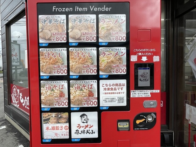 24時間対応冷凍ラーメン、餃子自販機メニュー