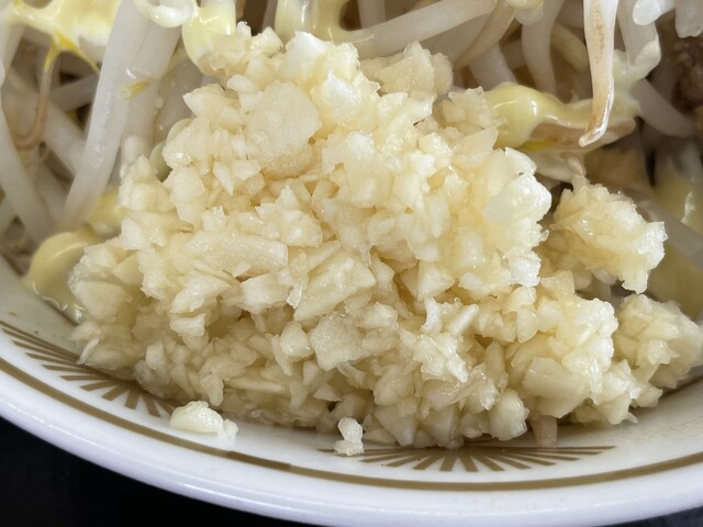 『ハーフ汁なしニンニクヤサイマシマシ+ネギ』のニンニク