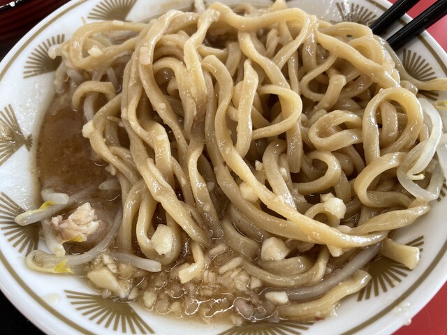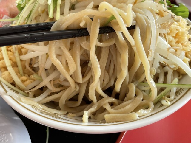『ラーメン普通ニンニク野菜マシマシ+ネギ』の麺