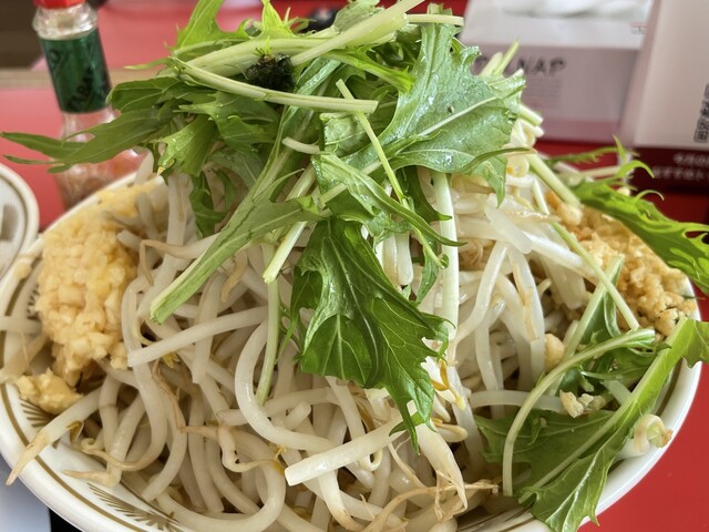 『ラーメン普通ニンニクショウガヤサイマシマシ+味玉(スクラッチクーポン)』のヤサイ