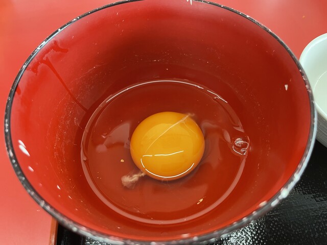『朝食セット(ラーメン)』の『生卵+カエシダレ』