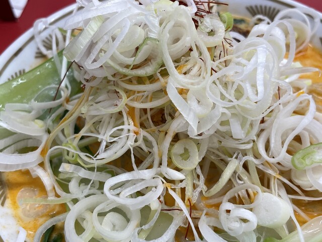 『ラーメン普通ニンニク野菜マシマシ+ネギ』のネギ